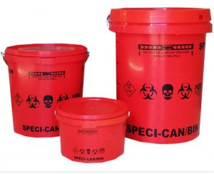 Sharps Containers (various sizes)Pharmaceutical container (various sizes)Speci Bin Containers (various sizes)Disposal box 50L & 142L Red Medical Waste Bags (various sizes)Bio hazardous tape (50m)